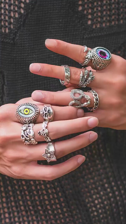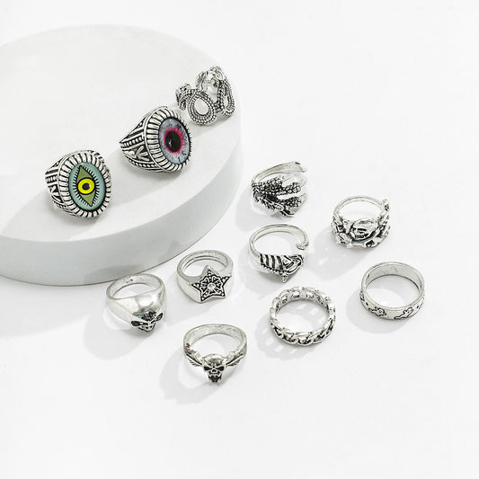 Trendy personalized devil's eye/skull/star/claw/irregular design ring set