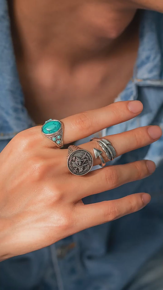 Trendy fashion turquoise/personalized feather arrow/pirate design all-match ring set