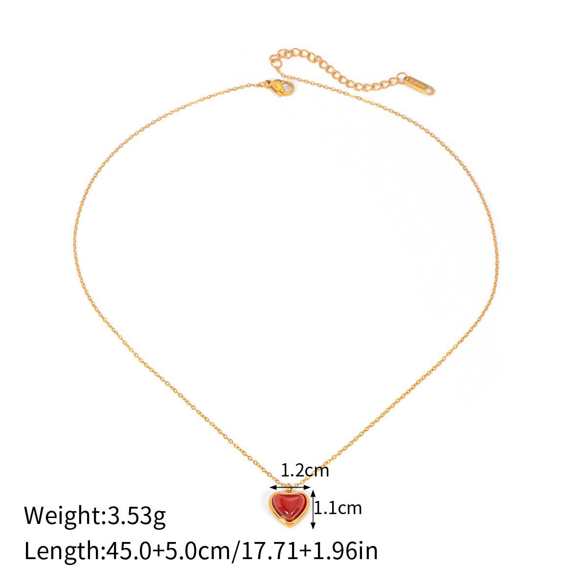This necklace features a light luxury and fashionable design style. It is made of high-quality 18K gold. The pendant is inlaid with red agate, showing a unique heart-shaped design, showing elegance and luxury.