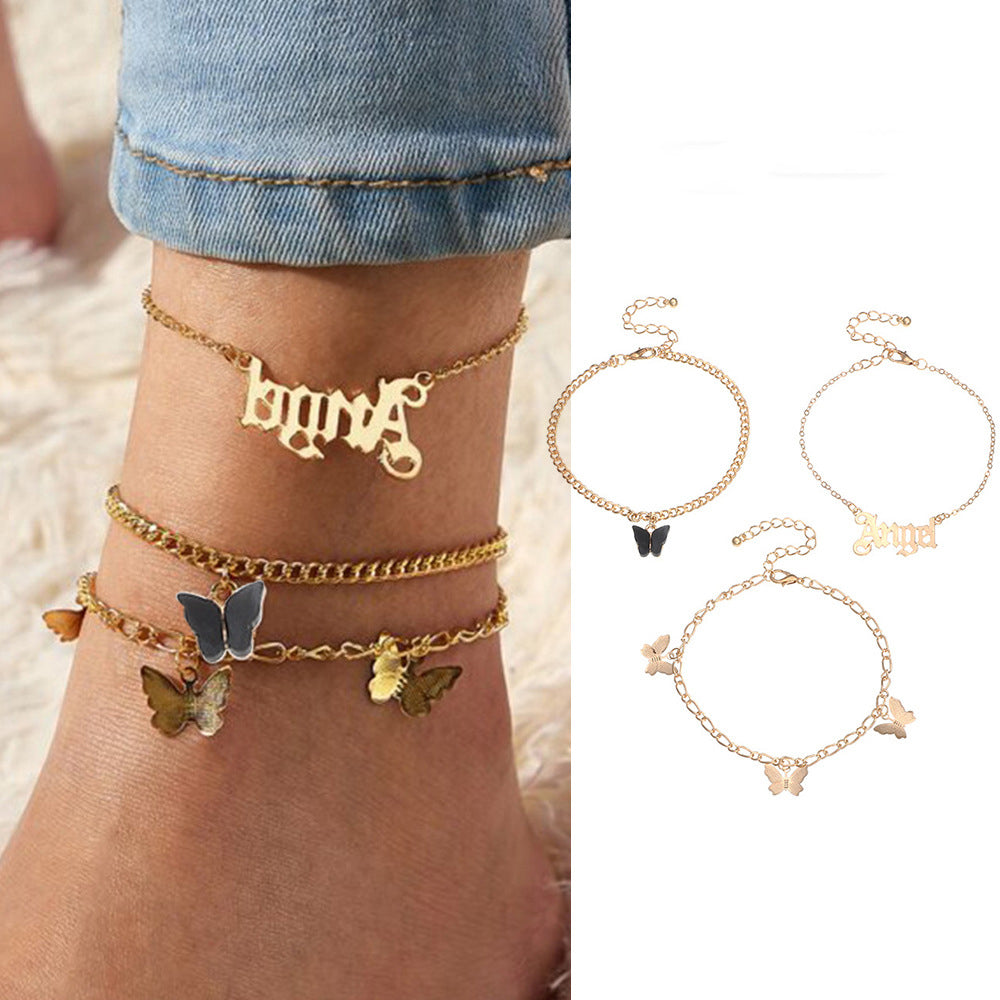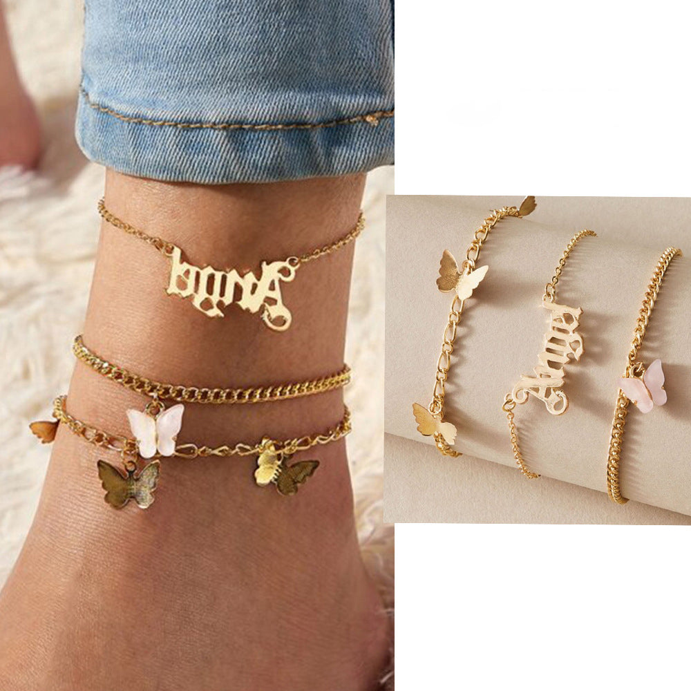 Exquisite fashion letter/butterfly three-layer design all-match anklet