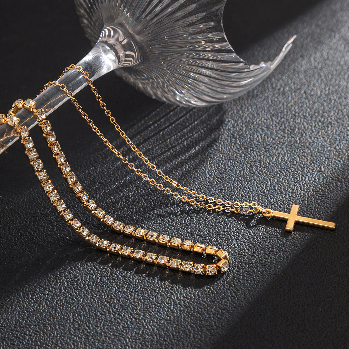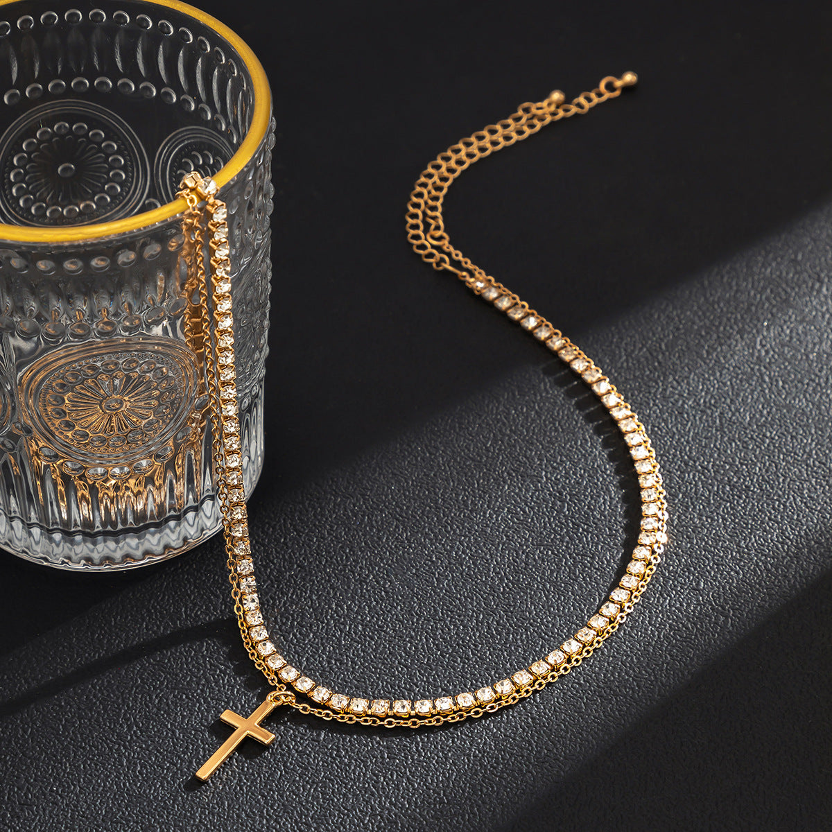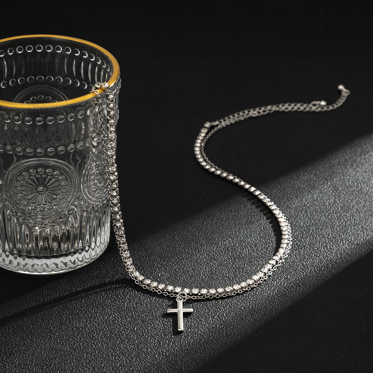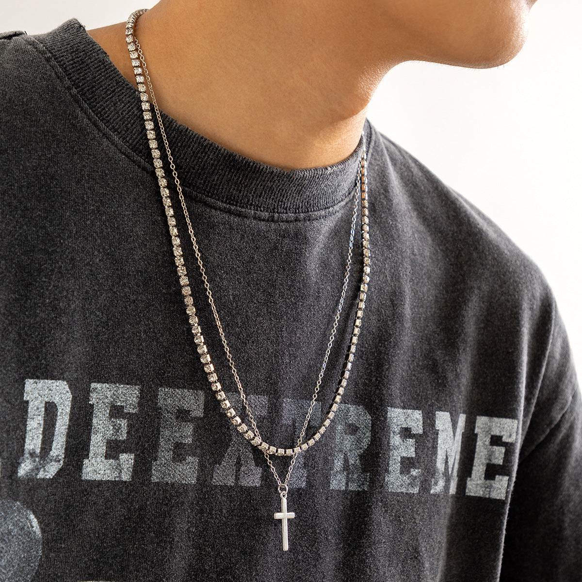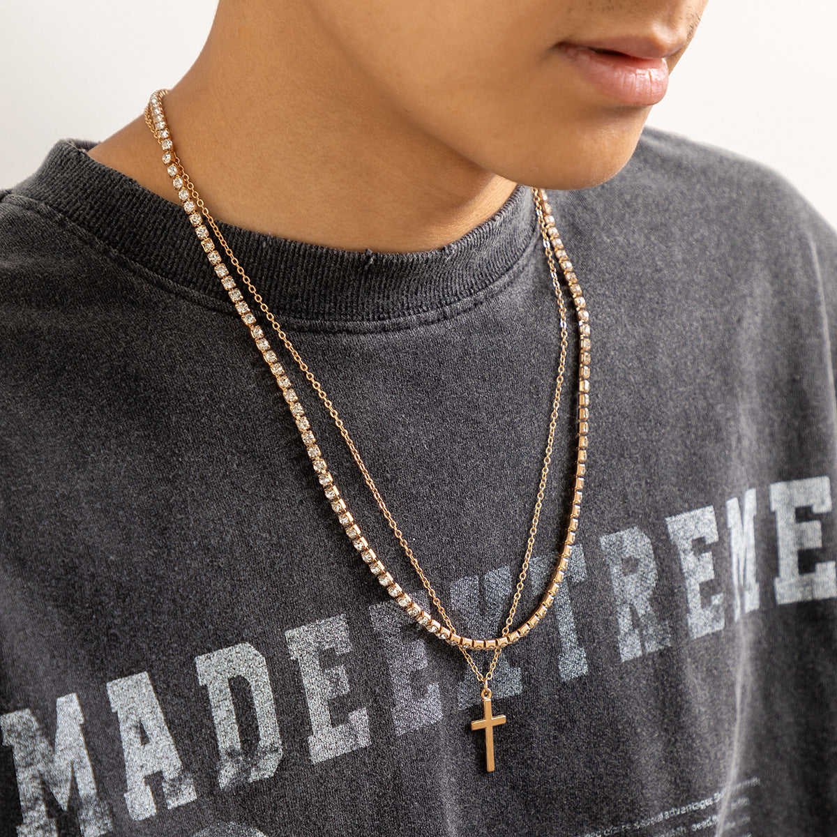 Retro Simple Cross Double Layered Claw Chain Design Hip Hop Necklace