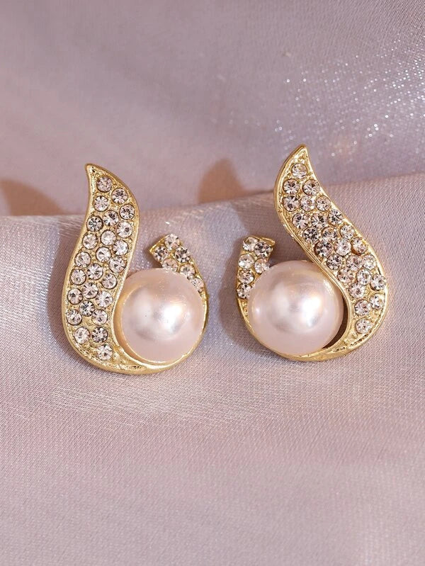 Rhinestone & Faux Pearl Decor Stud Earrings