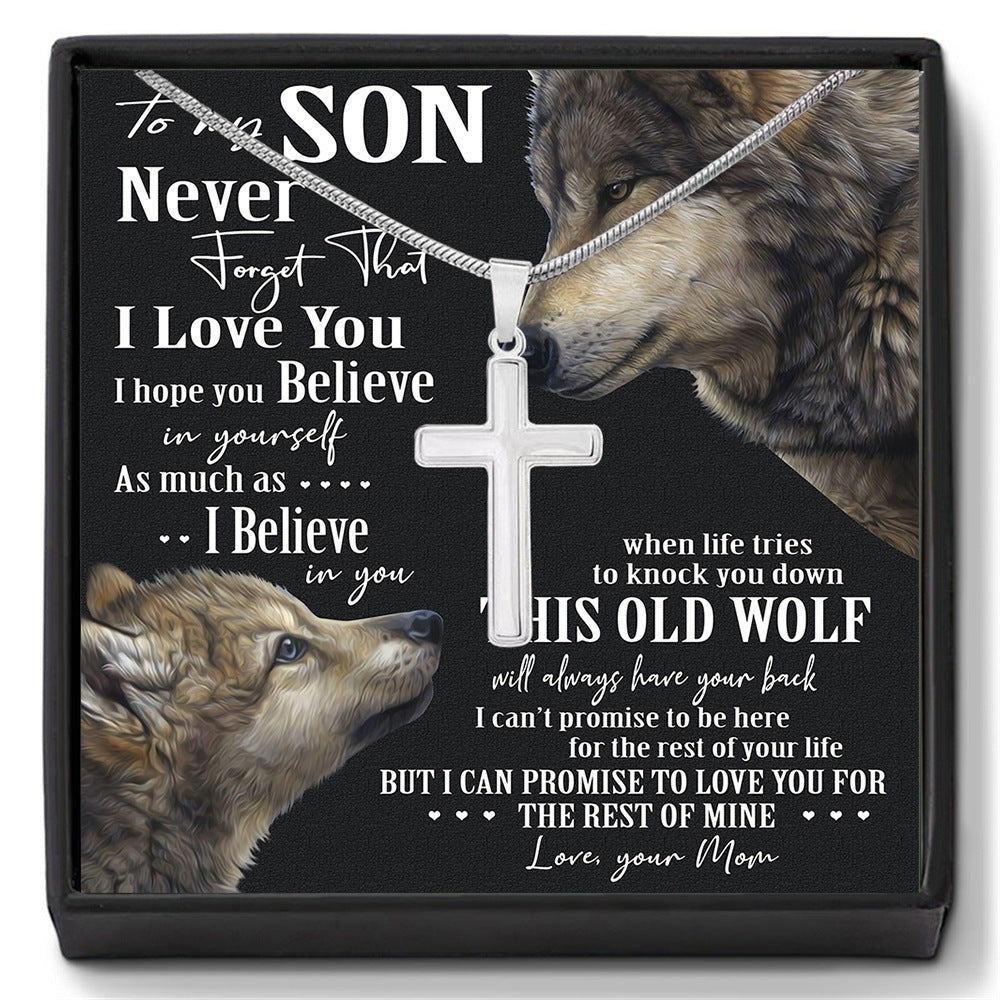 Stylish Simple Cross Gift Box Necklace for Your Amazing Son