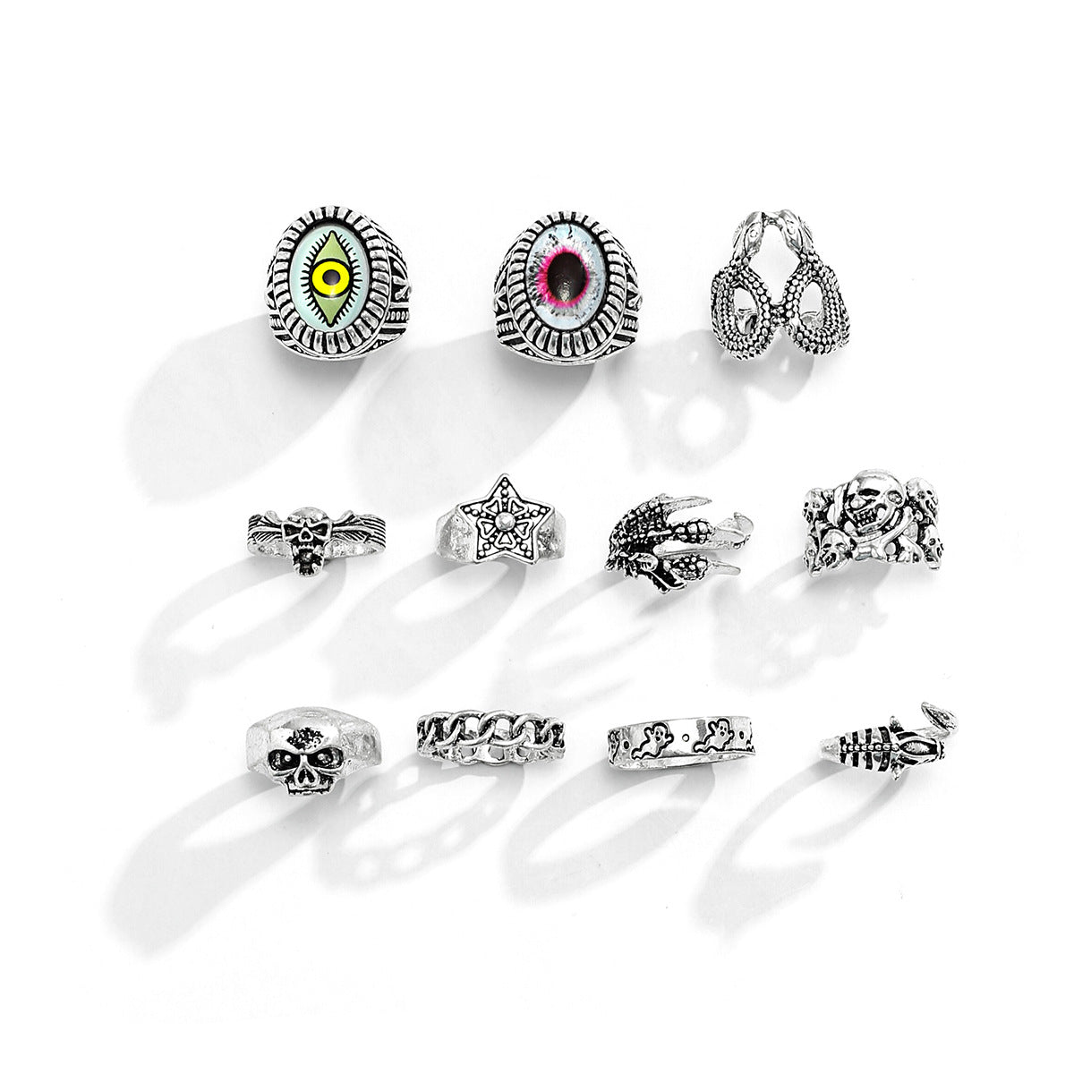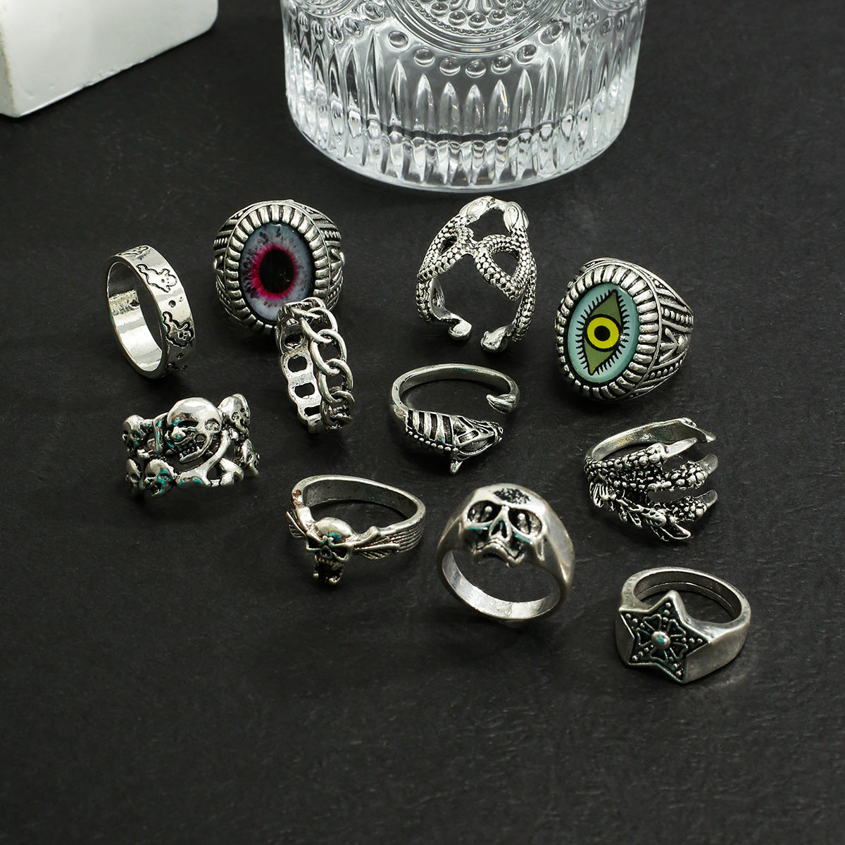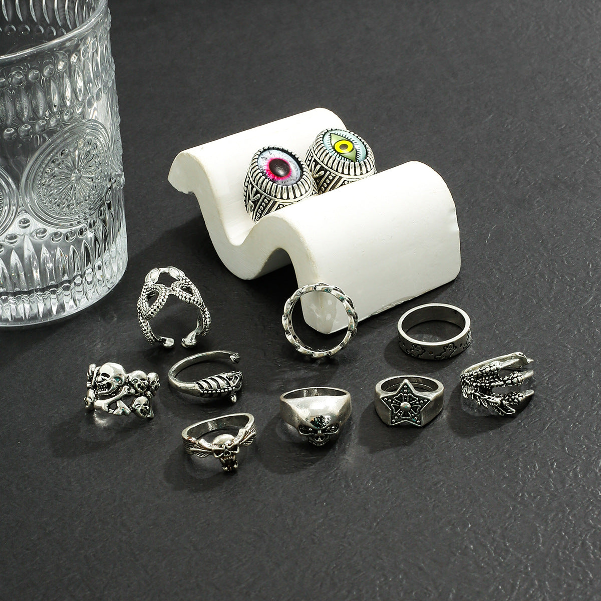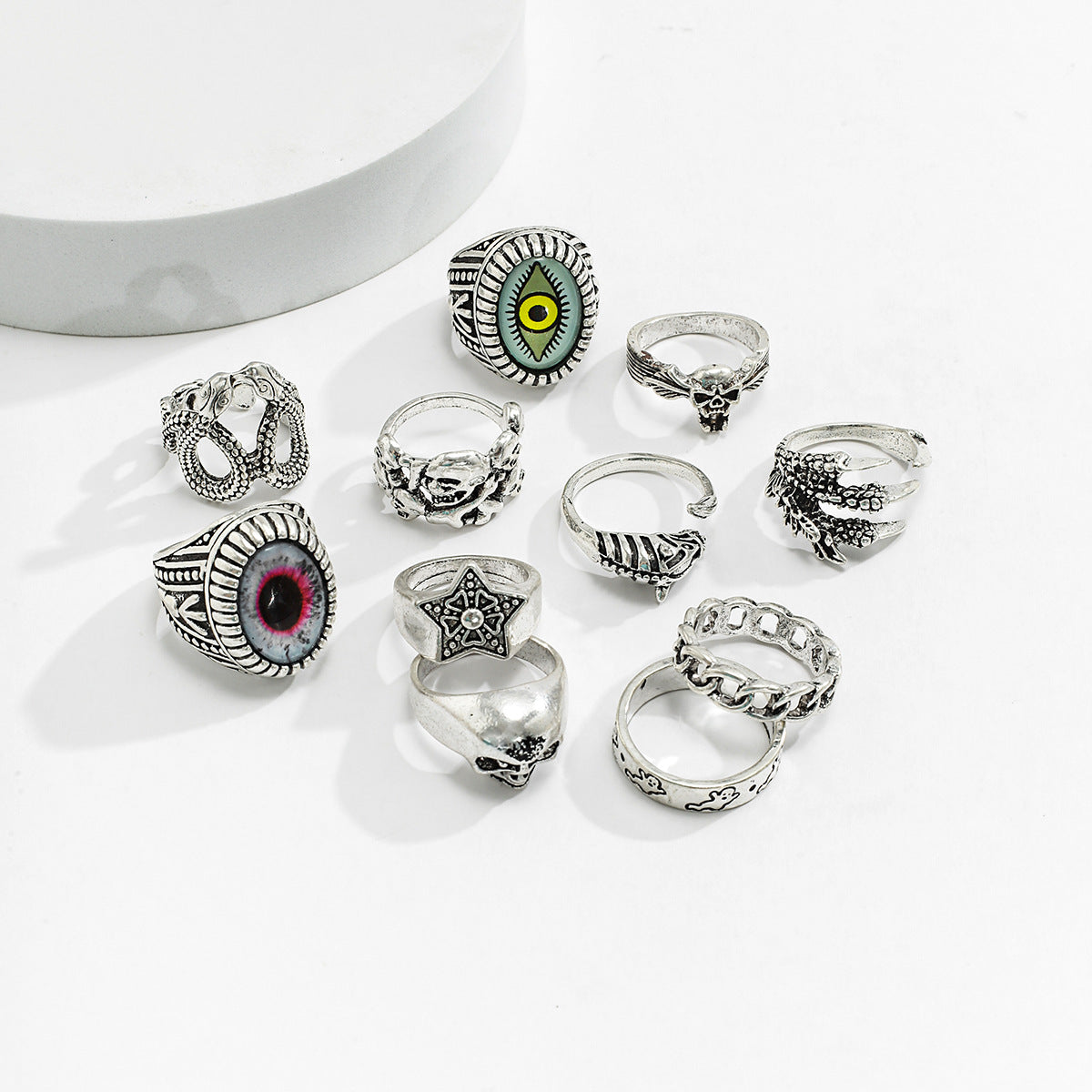 Trendy personalized devil's eye/skull/star/claw/irregular design ring set